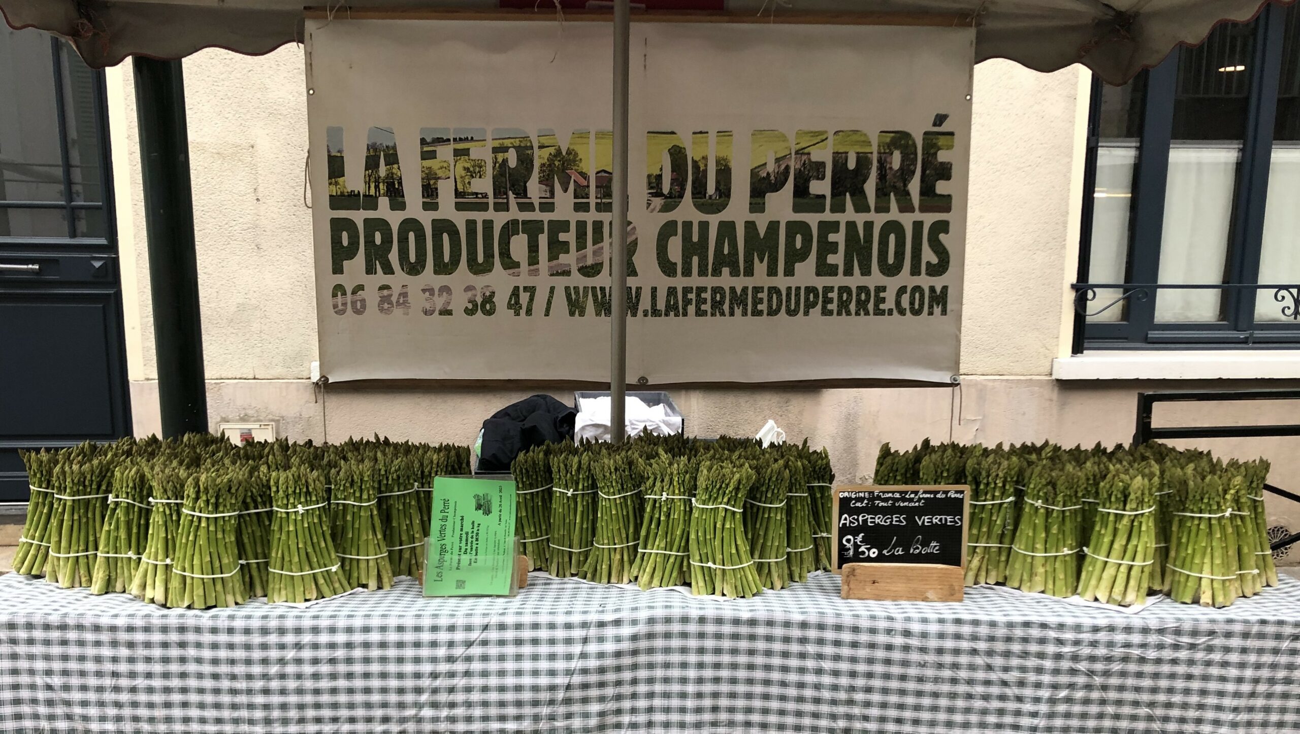 La vente d’asperges vertes en botte, la vente de maïs doux blanc sucré, la vente de pommes de terre, la vente de potimarron, courge et citrouille d’Halloween.